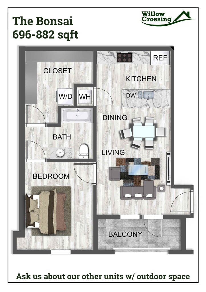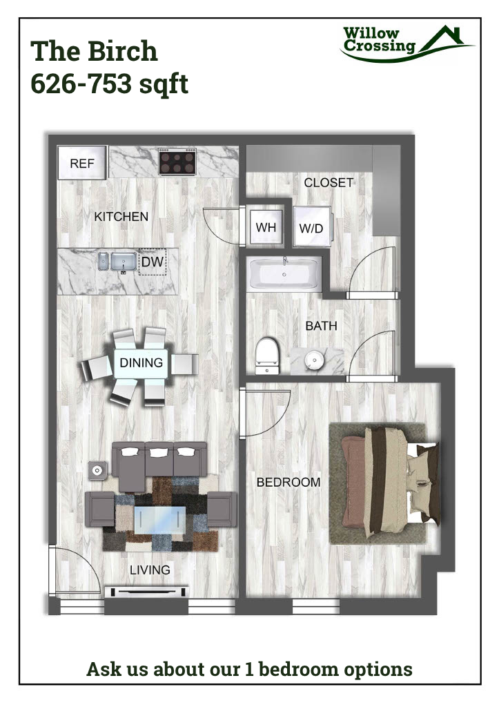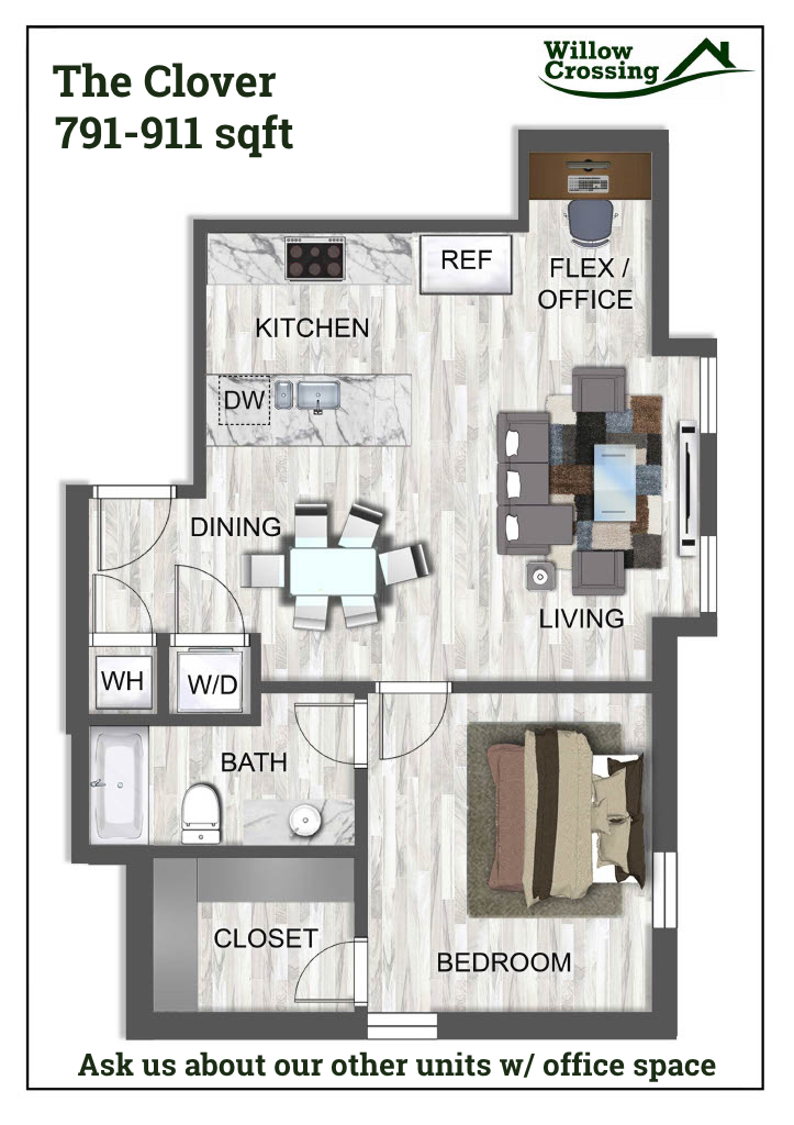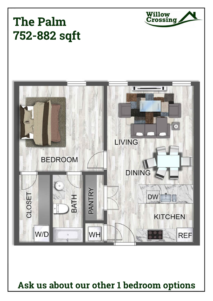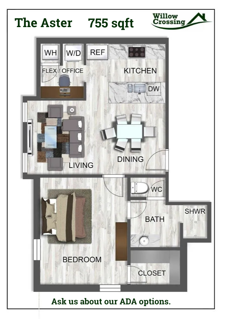 Welcome to Willow Crossing in Centerton, AR! Our pet-friendly community offers a variety of amenities to enhance your living experience. Enjoy the convenience of EV charging stations, a swimming pool for relaxation, and a pet park for your furry friends. Our residents have access to an online portal for easy communication, as well as on-site management and 24-hour emergency maintenance for peace of mind. Inside your apartment, you'll find modern features such as granite countertops, walk-in closets, and a washer/dryer for added convenience. The kitchen comes equipped with a refrigerator, stove/oven, and dishwasher. With a tranquil pond on the property and 1 bedroom with an office space and 2 bedroom 1.5 bath Townhomes, Willow Crossing provides a comfortable and convenient living environment. ADA 1 bedroom units available. The ease of coded locks for added security in your new home at Willow Crossing. Experience the splendor of Willow Crossing.