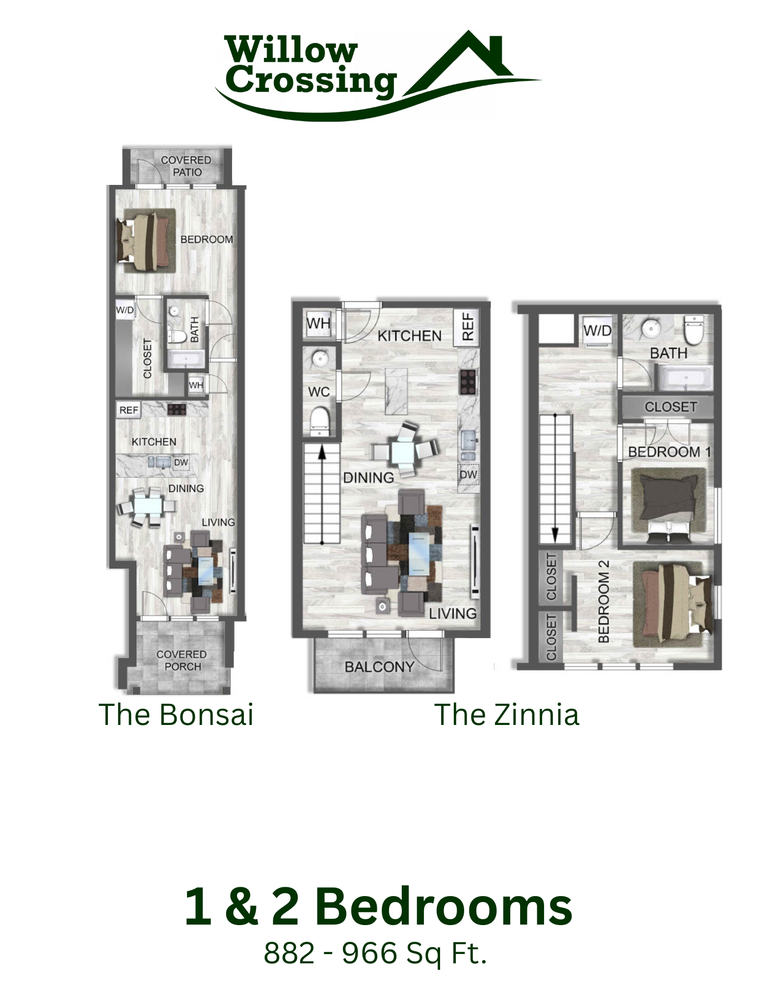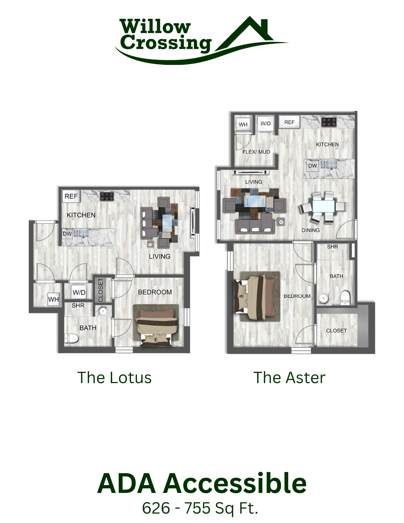 Welcome to Willow Crossing in Centerton, AR! Our pet-friendly community offers a variety of amenities to enhance your living experience. Enjoy the convenience of EV charging stations, a swimming pool for relaxation, and a pet park for your furry friends. Our residents have access to an online portal for easy communication, as well as on-site management and 24-hour emergency maintenance for peace of mind. Inside your apartment, you'll find modern features such as granite countertops, walk-in closets, and a washer/dryer for added convenience. The kitchen comes equipped with a refrigerator, stove/oven, and dishwasher. With a tranquil pond on the property and 1 bedroom with an office space and 2 bedroom 1.5 bath Townhomes, Willow Crossing provides a comfortable and convenient living environment. ADA 1 bedroom units available. The ease of coded locks for added security in your new home at Willow Crossing. Experience the splendor of Willow Crossing.